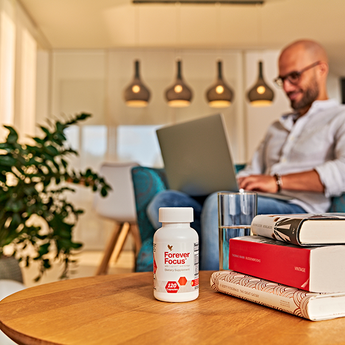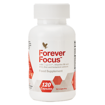 Συνδυάζοντας παραδοσιακά βότανα, βιταμίνες και ανόργανα άλατα με το κλινικά μελετημένο Cognizin μπορείτε να αναλάβετε τον έλεγχο της μέρας σας με το Forever Focus. Με εκχυλίσματα rhodiola, bacopa, πράσινο τσάι και γκουαράνα, το Forever Focus συνδυάζει αυτά τα βότανα με τα φυσικά ευεργετικά αποτελέσματα των βιταμινών B6, B12, παντοθενικό οξύ, ψευδάργυρου για να βοηθήσουν στην πνευματική απόδοση.