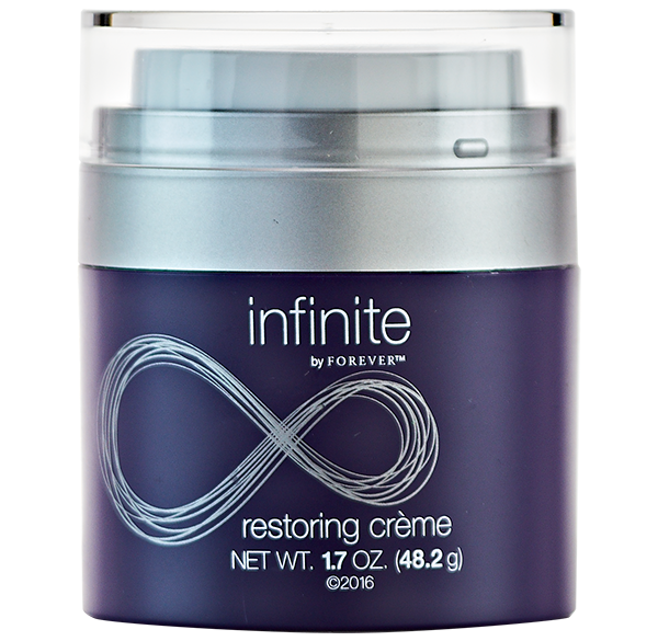 Ολοκληρώνοντας αυτό το καταπληκτικό, ενυδατικό προϊόν, με τη βοήθεια της καινοτομίας και της προηγμένης τεχνολογίας προσθέσαμε μια νέα ένωση σακχάρου φυτικής προέλευσης που βελτιώνει το ενυδατικό φράγμα του δέρματος. Το τελικό και πολύ σημαντικό βήμα στην infinite by Forever™, η restoring crème σφραγίζει όλα τα οφέλη των συστατικών που έχουν διεισδύσει στο δέρμα σας